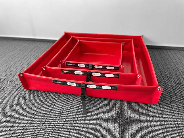 Alle ECCOTARP Auffangsysteme sind speziell für das extrem schnelle Auffangen austretender Gefahrstoffe wie z. B. Öl oder Benzin und für Dekontaminationszwecke am Einsatzort konzipiert. Sie sind beständig gegen Kraftstoffe, Heiz- und Dieselöl, Schmiermittel, Hydrauliköl, Bremsflüssigkeit und Desinfektionsmittel. Daher eignen sie sich auch für Wartungs- oder Reinigungsarbeiten sowie für das zeitlich begrenzte Lagern von Behältern mit Mineralölprodukten, Säuren und Laugen oder von kontaminierten Teilen und Geräten.